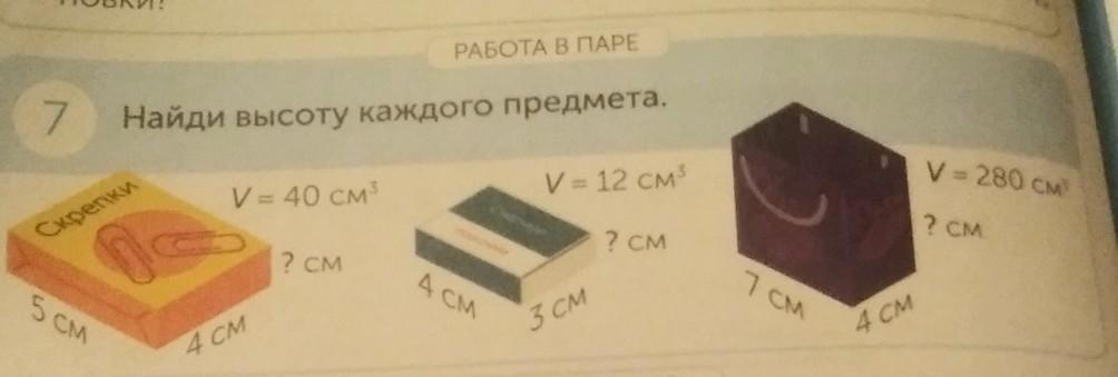 V=280 (см.³), a=7 (см.), b=4 (см.)
