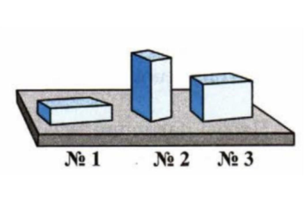 Бруски имеют равные массы. Какой из них оказывает на опору наименьшее давление, а какой наибольшее?
