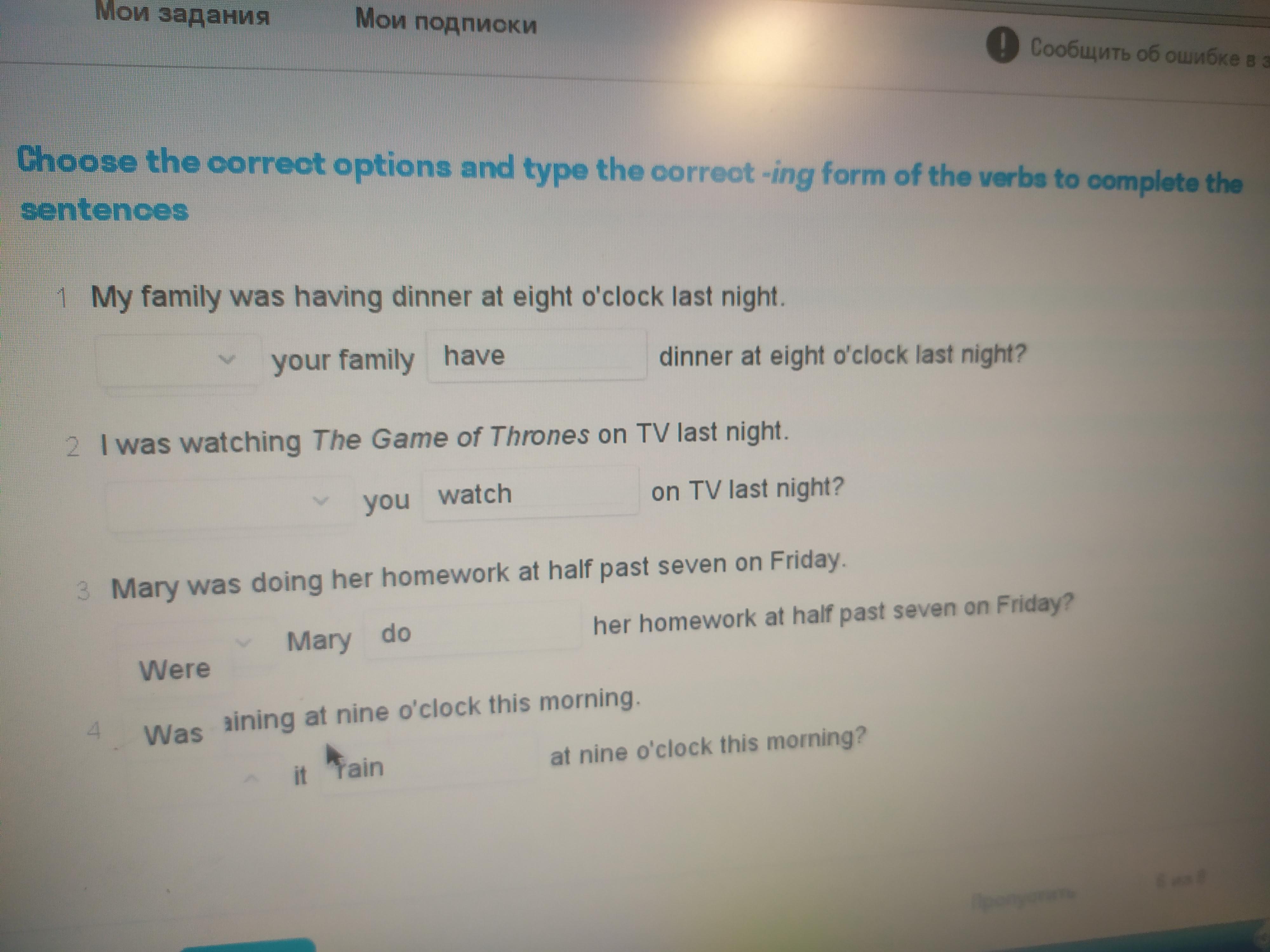 ВО ВТОРЫХ ИКОНКАХ ГДЕ СЛОВА : have watch do rain тоже надо изменить