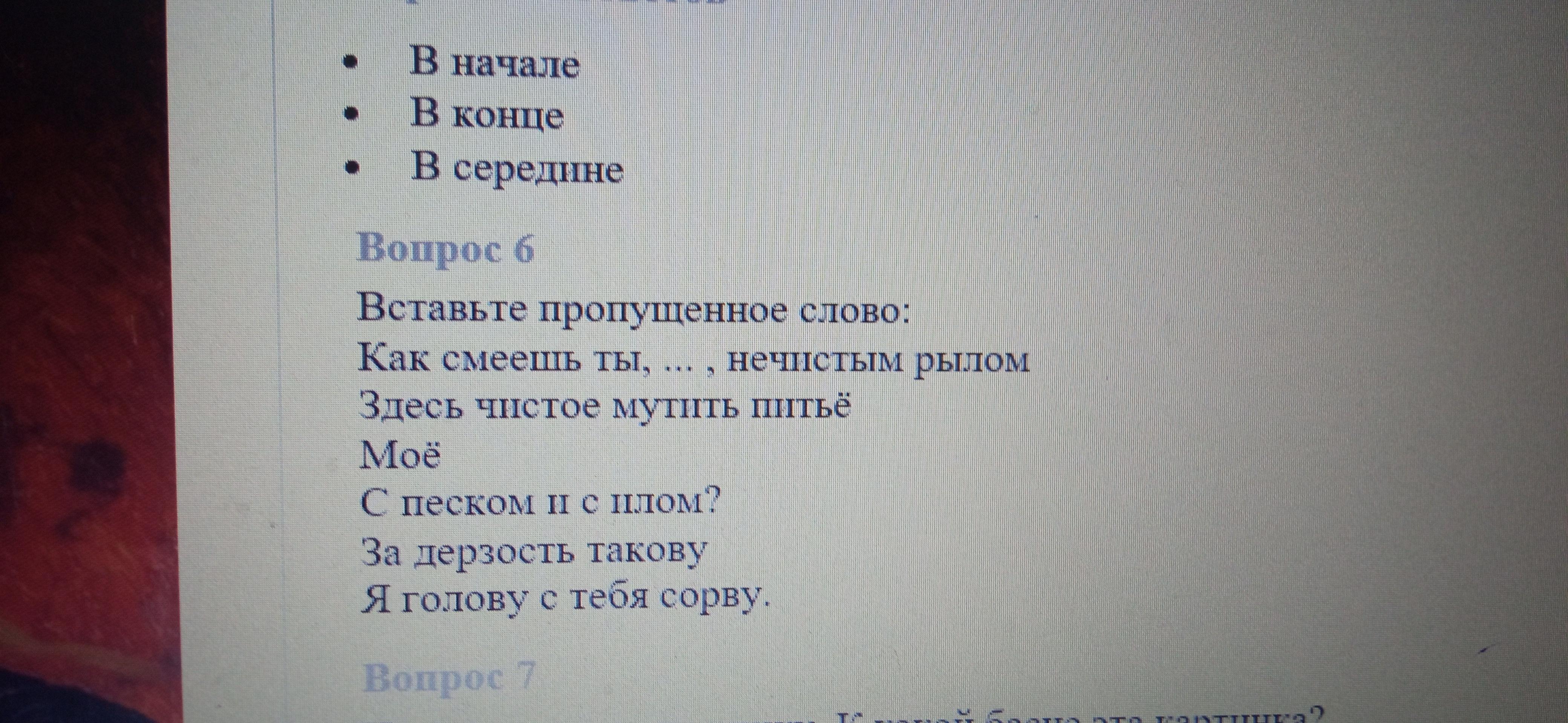 5) в начале; 6) своим ;1) ягненок- простой народ., волк- власть имущая знать
