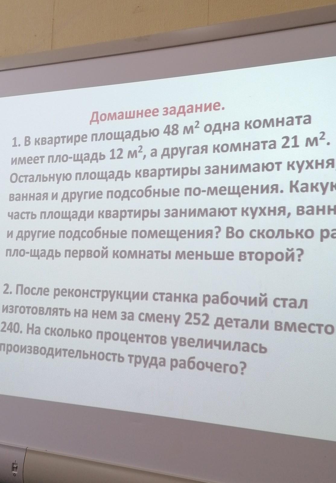 площадь второй комнаты больше первой в 1,75 раза; 68,75 % составляет площадь двух комнат.
