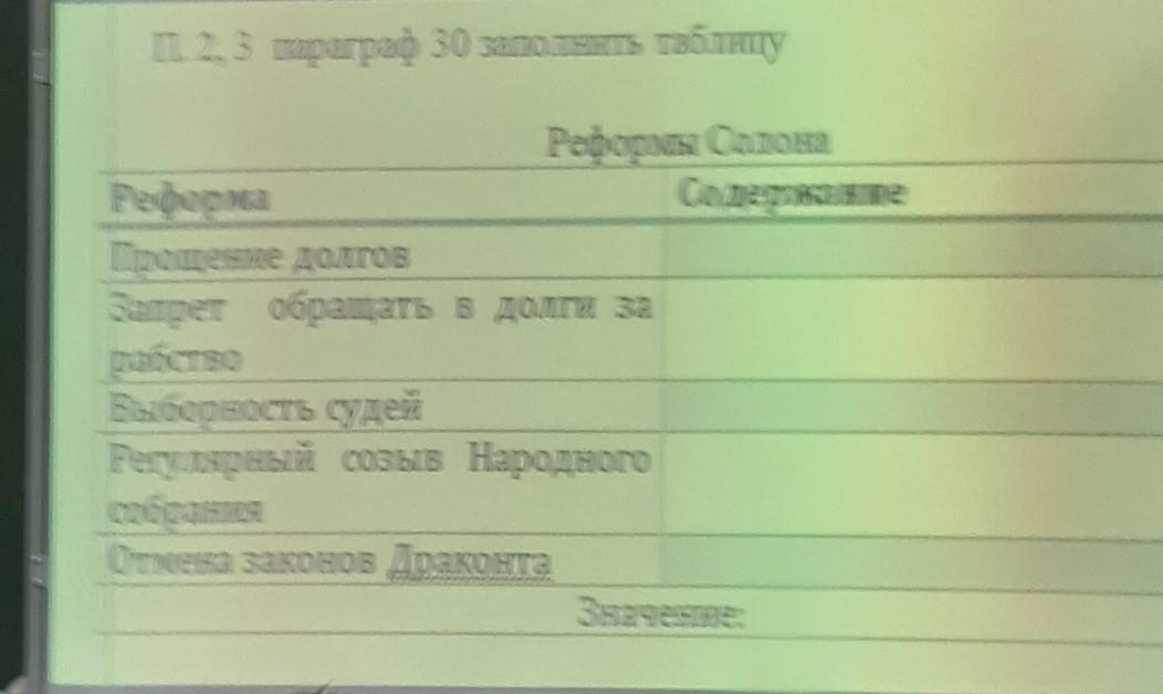реформа. 1.Прощение долгов 2.Запрет обращать в долги за рабство 3,.Выборность судей 4.Регулярный созыв народного собрания 5.Отмена законов Драконта