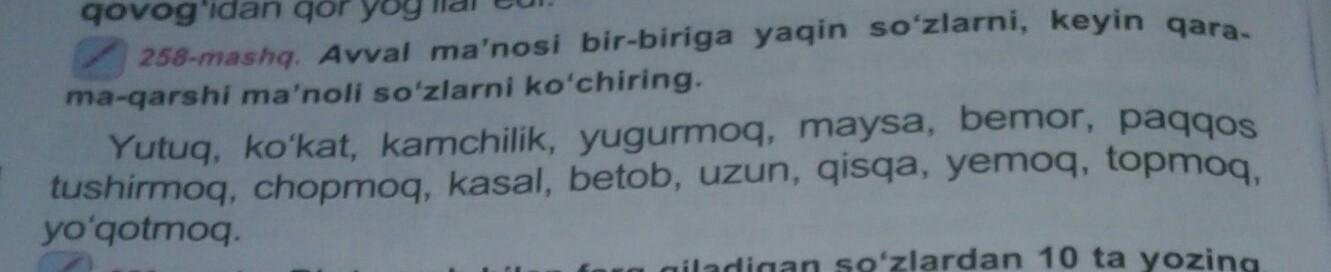 Ответ: Ma'nosi bir-biriga yaqin sõzlar: