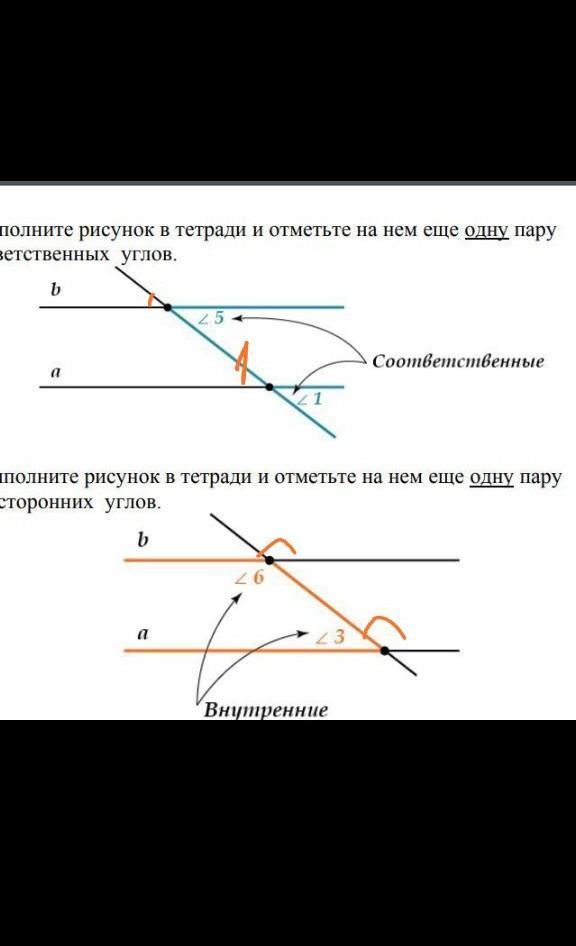 на первом:угол вертикальный первому и угол вертикальный второму соответственные, а на втором вертикальный шестому и смежный третьему