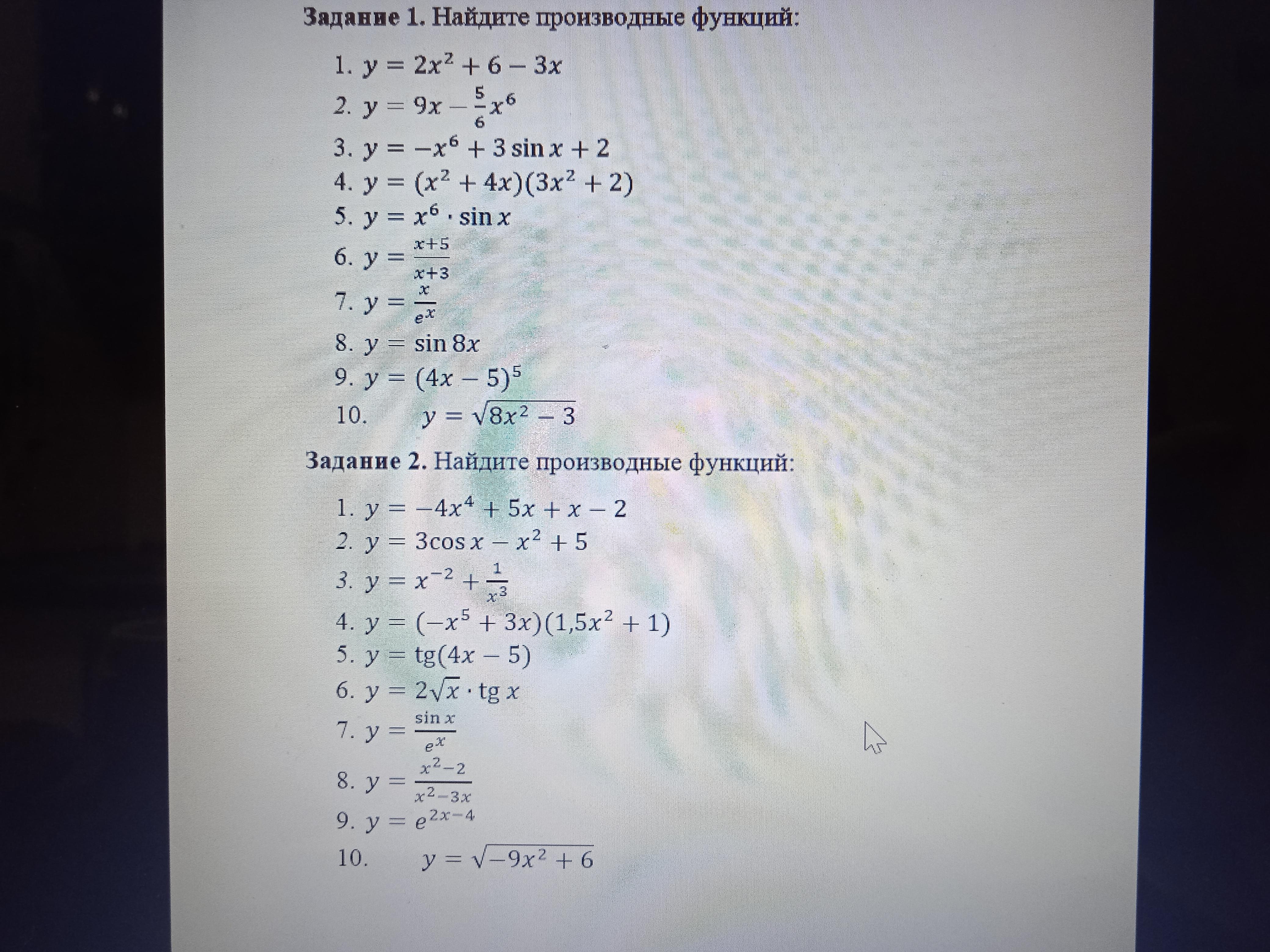 4) y' = (-5x^4 + 3)(1.5x^2 + 1) + (3x)(-x^5 + 3x)