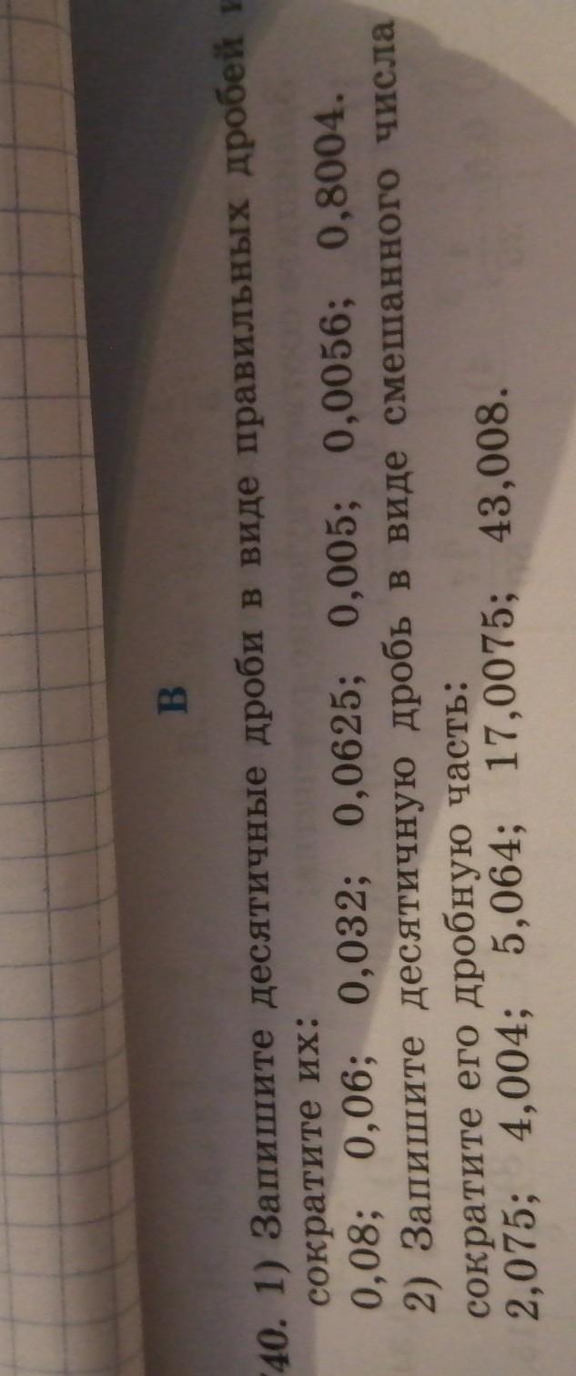 40. 1) Запишите десятичные дроби в виде правильных дробей