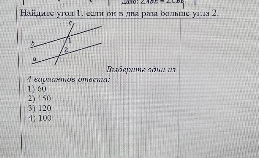 ответ) 1) 60 градусов , тк угол 1 будет смежный с углом через прямую левее от него, а тк угол 2 в 2 раза больше , то 1 будет равен 60 градусов