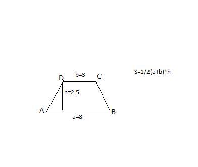S=1\2 (a+b)*h=1\2*(3+5)*2,5=10 см²