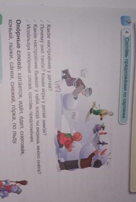 Дети зимой лепят снеговика,катаются с горки , на коньках по льду