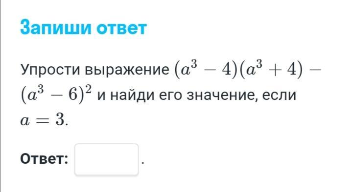 (a³-4)(a³+4)-(a³-6)²= (a⁶+4a³-4a³-16)-(a⁶-12a³+36)= a⁶-16-a⁶+12a³-36= 12a²-52
