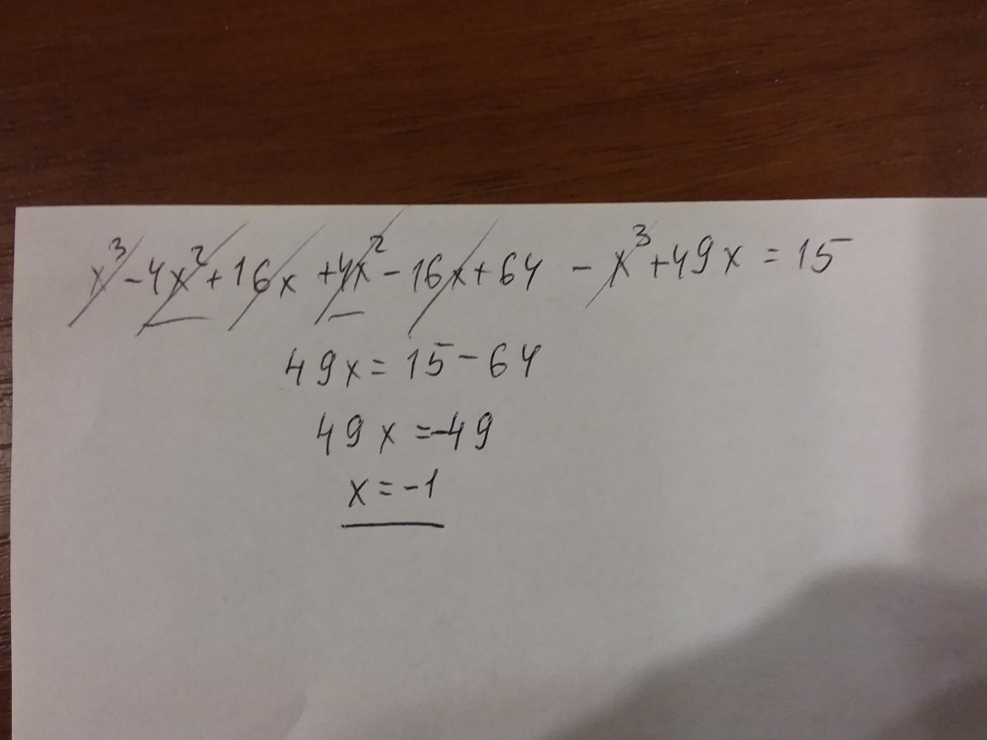 (x+4)(x²-4x+16)-x(x-7)(x+7)=15