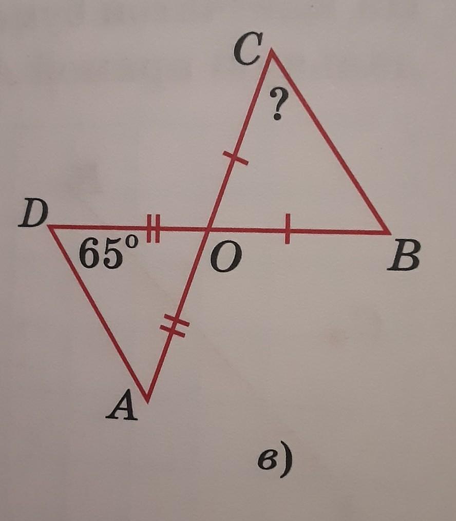 Объяснение:Треугольники равнобедренные, углы при основании равны. В треуг. АОД: угол Д=А=65 градусов, угол О=180 - (65+65)=50 градусам. В треугольнике ВОС: угол СОВ=50 градусам как вертикальный с углом АОД. Следует, угды С и В будут (180-50):2=65 градусам.