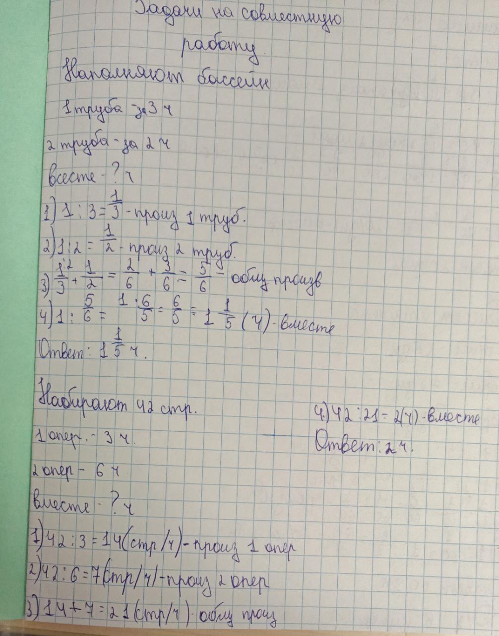 1) 24 т воды первый насос накачивает за 6 ч, а второй — за 3 часа. За сколько часов накачают 24 т воды два насоса, если будут работать вместе?