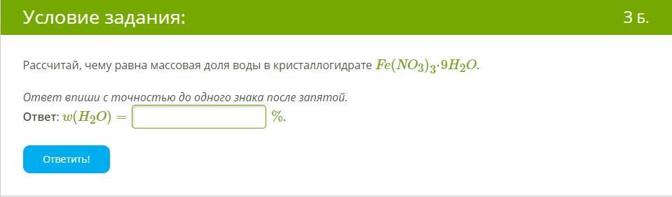 Рассчитай, чему равна массовая доля воды в кристаллогидрате Fe(NO3)3⋅9H2O.