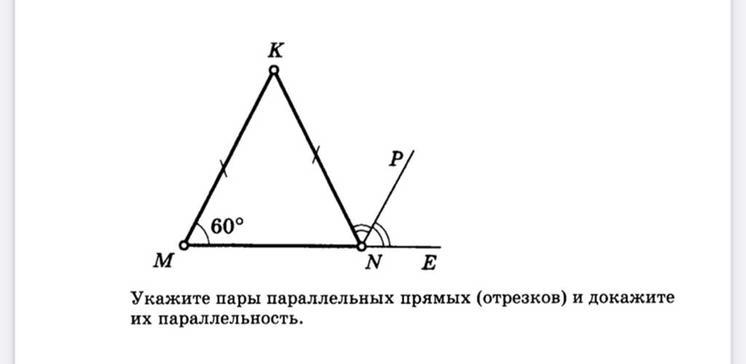 треугольник равно бедренной, основания равны, так как в треугольнике всего 180 градусов то угол MKN 60градусов. угол МNK смежный с KNE=180-60=120 градусов. так как углы делятся биссектрисой они равны, тоесть угол PNK=60 градусам. углы PNK и MKN накрест лежащие при параллельных MK и NP и общей стороне KN
