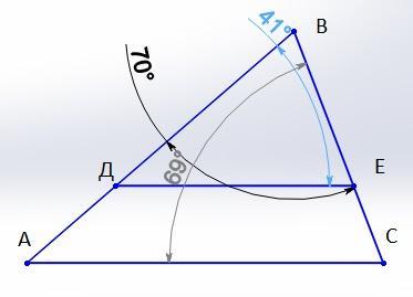 D∈AB,E∈BC, ∢CBA=70°, ∢EDB=41°.