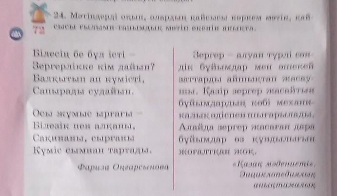 24. Мәтіндерді оқып, олардың қайсысы көркем мәтін, қай-