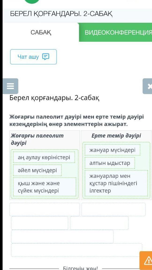 5-сынып Қазақстан тарихы. Онлайн-мектеп. Билимленд. Жоғарғы палеолит дәуірі мен ерте темір дәуірі кезеңдерінің өнер элементтерін ажырат.