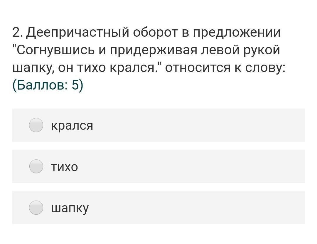 Крался (как?) согнувшись и придерживая левой рукой шапку (д.о.)