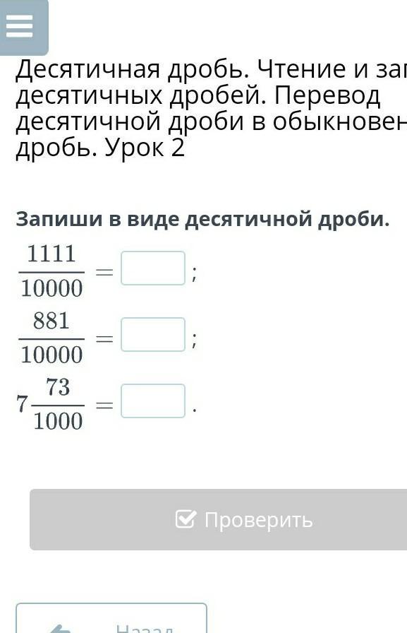 Десятичная дробь. Чтение и запись десятичных дробей. Перевод десятичной дроби в обыкновенную дробь. Урок 2