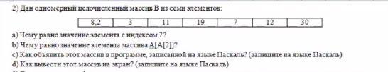 а) индексы массива в паскале зависят от объявления этого массива. Если данный массиб был объявлен как array [1..7] of real; тогда элемент с индексом 7 будет равен 30.0. Если же объявить массив как array [0..6] of real; то в таком случае элемента с индексом 7 не существует.