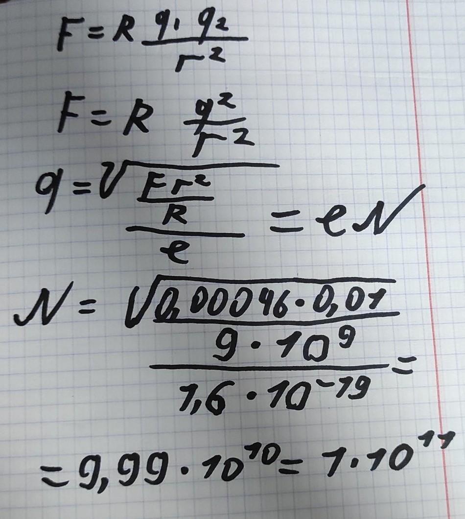Два отрицательно заряженных шарика, расположенных на расстоянии 10 см друг от друга, взаимодействуют с силой 0,46 мН. Заряды шариков отличаются в 2 раза. Определите число избыточных электроноа на шарике с меньшим зарядом.