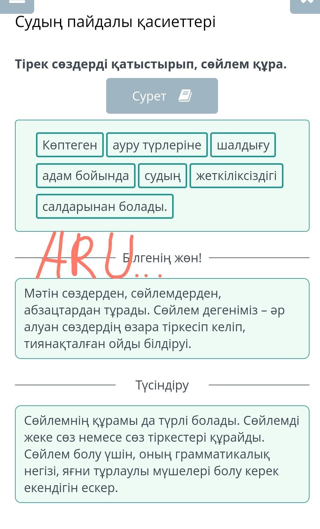 Тірек сөздерді қатыстырып, сөйлем құра.