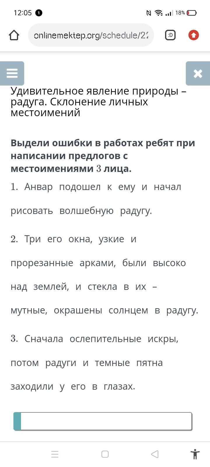 1. анвар подошёл к нему и начал рисовать волшебную радугу. 2. три его окна, узкие и прорезанные арками, были высоко над землей, и стекла в них - мутные, окрашены солнцем в радугу. 3. сначала ослепительные искры, потом радуги и темные пятна заходили у него в глазах.