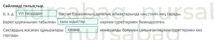 5-сынып Қазақстан тарихы. Онлайн-мектеп. Билимленд. Берел қорғандары.2-сабақ. Сөйлемді толықтыр.