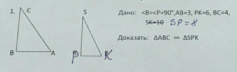 Следовательно ΔАВС ~ΔKPS по второму признаку подобия треугольников.