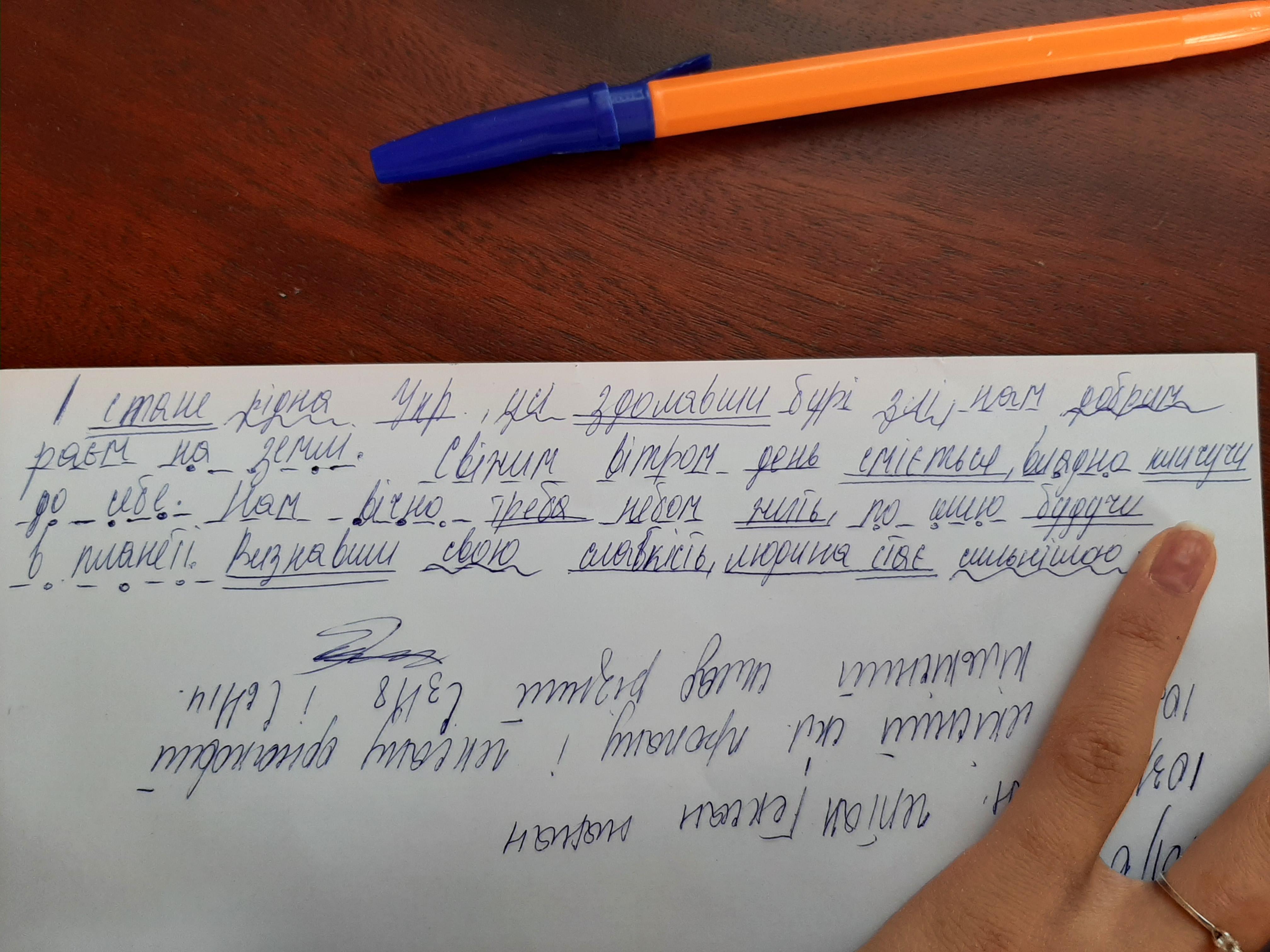 І стане рідна Україна, усі здолавши бурі злі, нам добрим раєм на землі. Свіжим вітром день сміється, владно кличучи до себе. Нам вічно треба небом жить, по шию будучи в планеті! Визнавши свою слабкість, людина стає сильнішою.