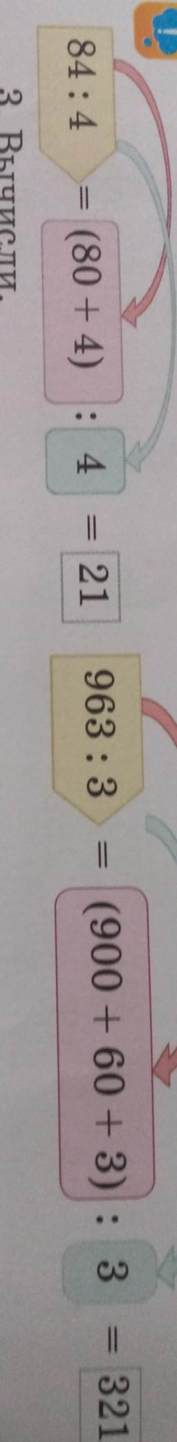 84:4=(80+4):4=21 963:3=(900+60+3):3=321 помогите на 2) сестрёнке нужно 3 класс