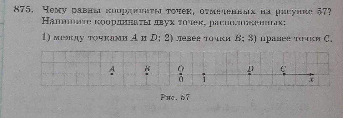 875. Чему равны координаты точек, отмеченных на рисунке 57?