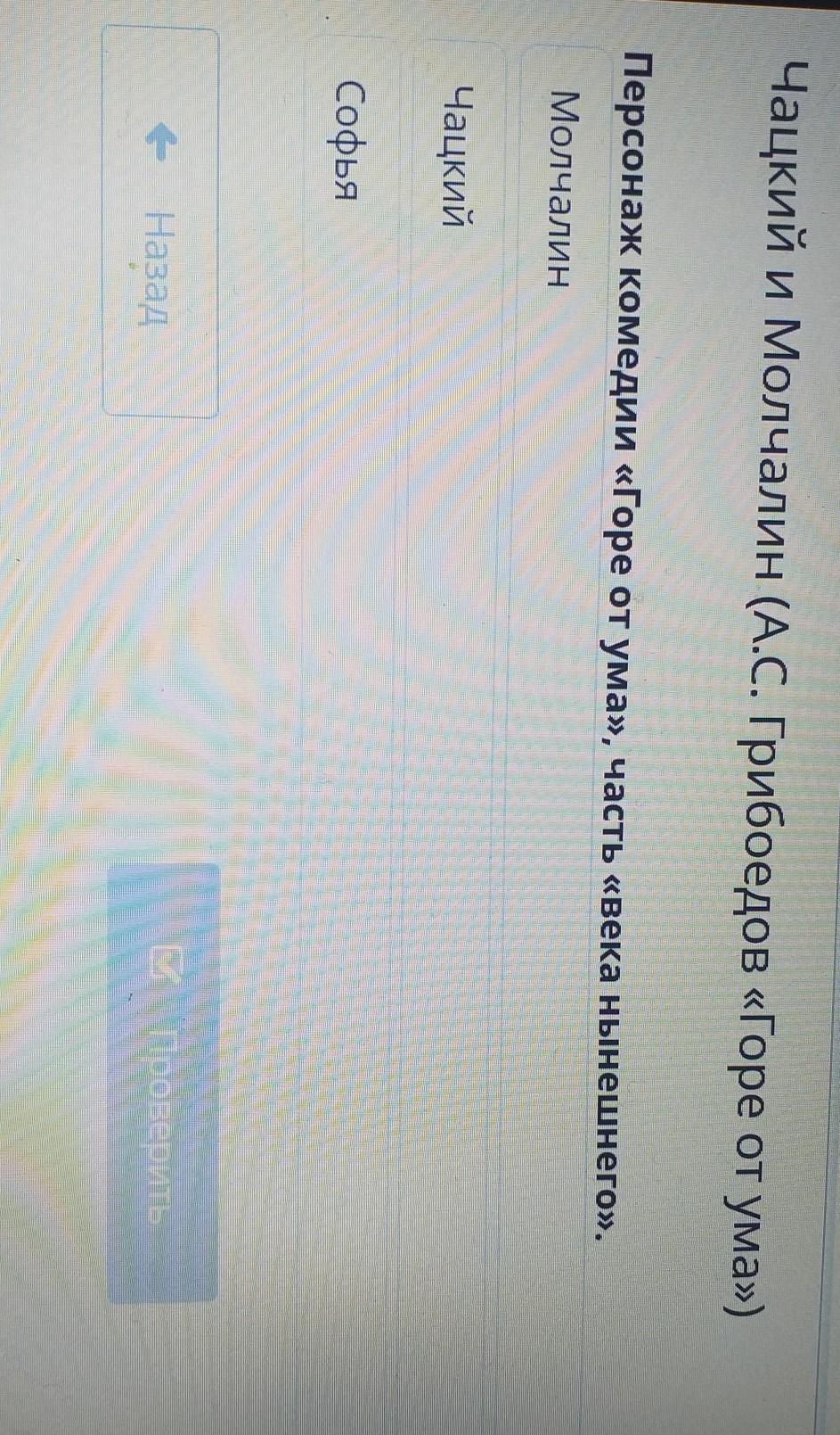 персонаж комедии Горе от ума часть века нынешнего Молчалин Чацкий Софья
