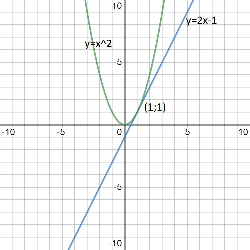 OTBET: точка пересечения параболы с прямой:( 1; 1)