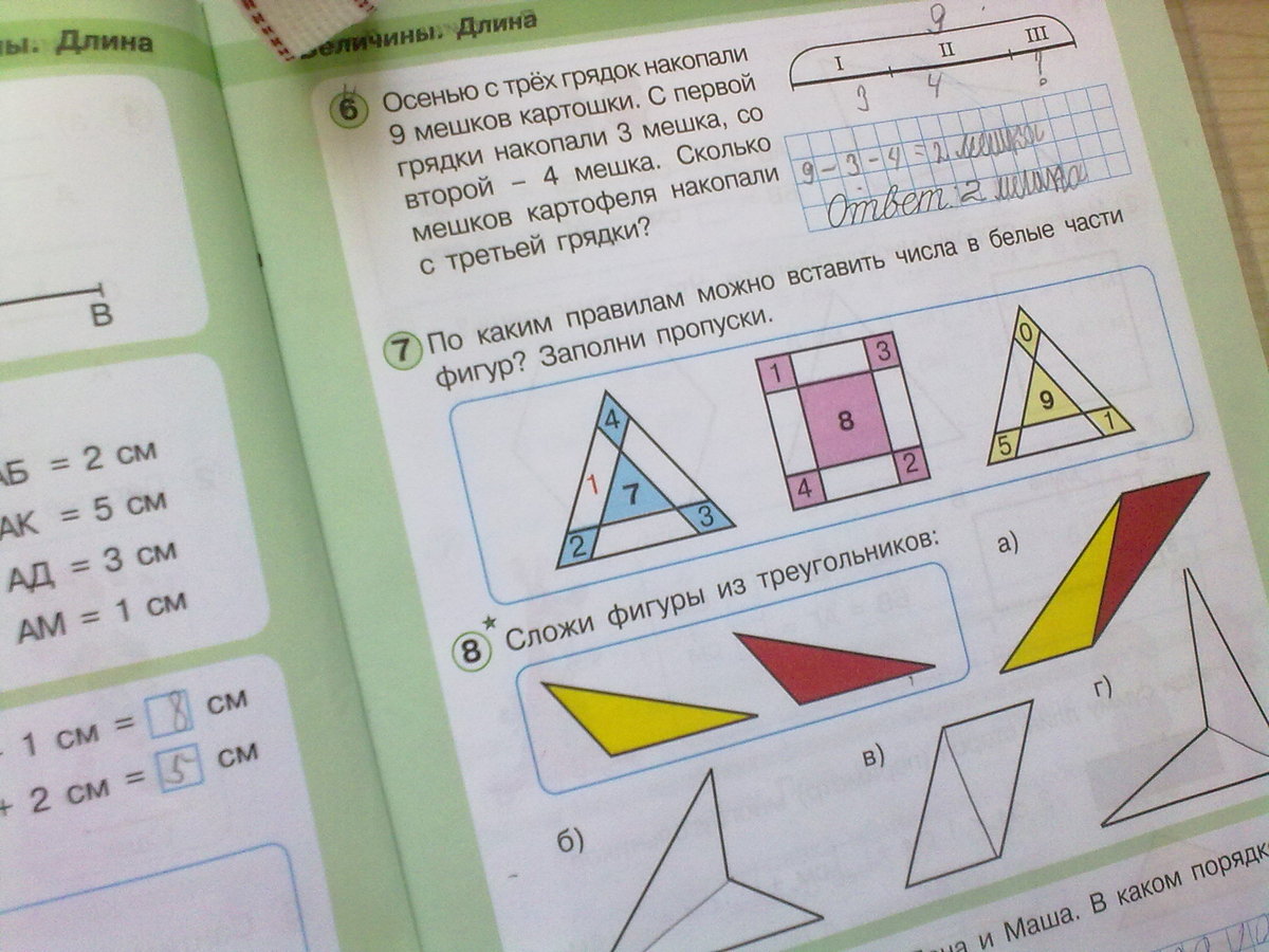 По каким правилам можно вставить числа в белые части фигур? Заполни пропуски.Фигуры на рисунке