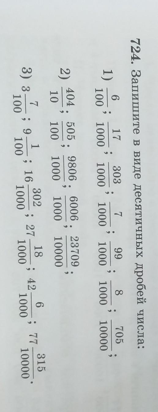 номер 724 запишите в виде десятичных дробей числа Помогите пожалуйста