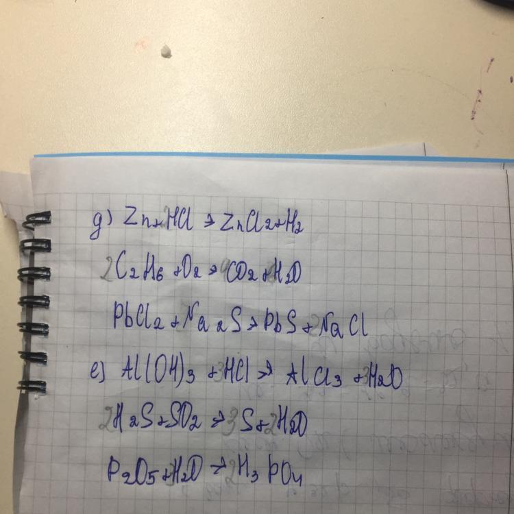 е) Al(OH)3 + HCl → AlCl3 + H2O