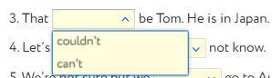 3.Я думаю, что can't, но не уверен. Тут недостаточно контекста. Мб он говорит типо: "Чел, это не мог быть Том, он в Японии".