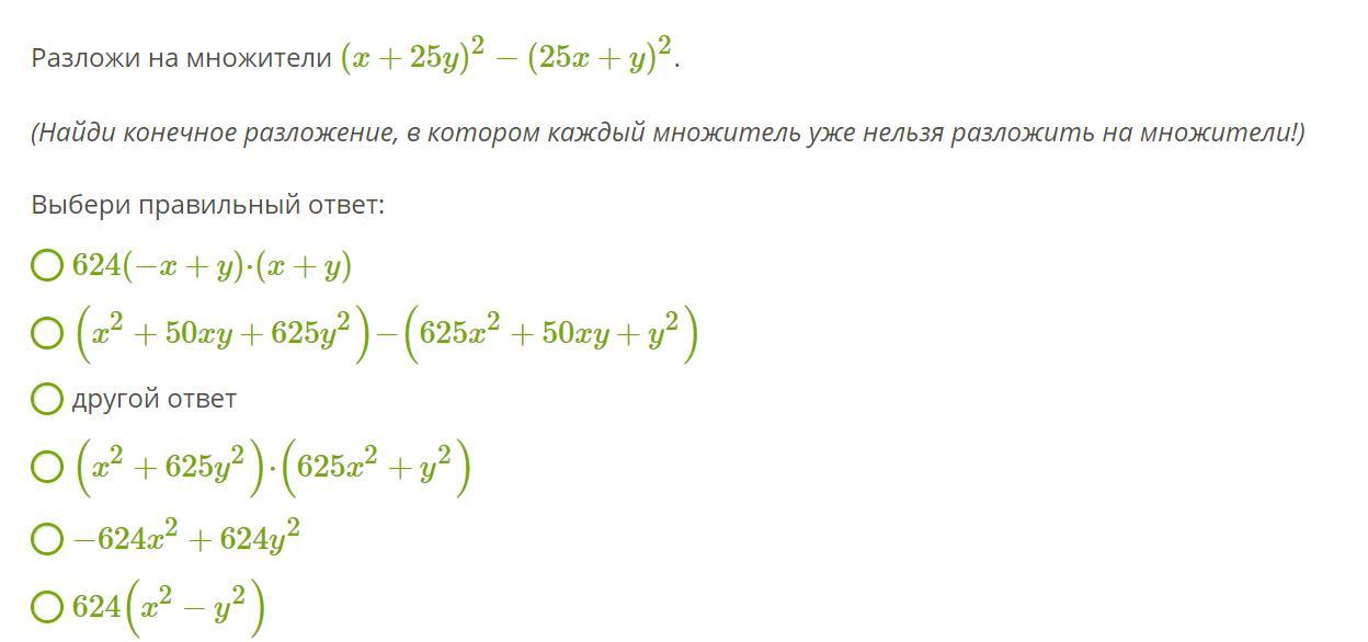 Ответ: Берите или другой ответ, и пишите мой ответ, или пишите это ( такое получиться если упростить. Но в задании просят разложить, редко бывает, что правильный вариант другой ответ, вот какой ответ должен быть, если разложить на множителе.