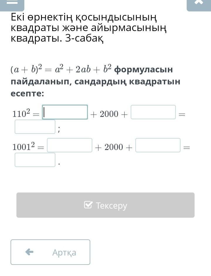 (a + b)2 = a2 + 2ab + b2 формуласын пайдаланып, сандардың квадратын есепте;