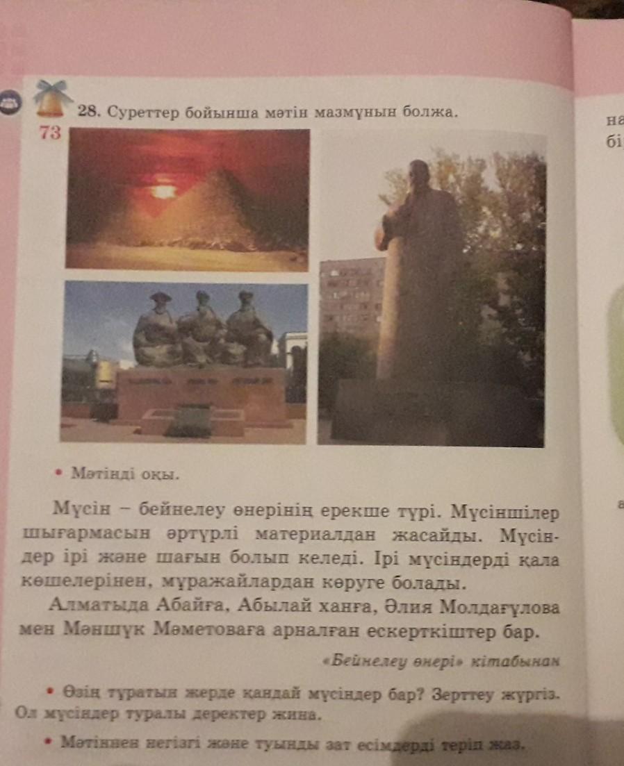 • Өзің тұратын жерде қандай мүсіндер бар? Зерттеу жүргіз,