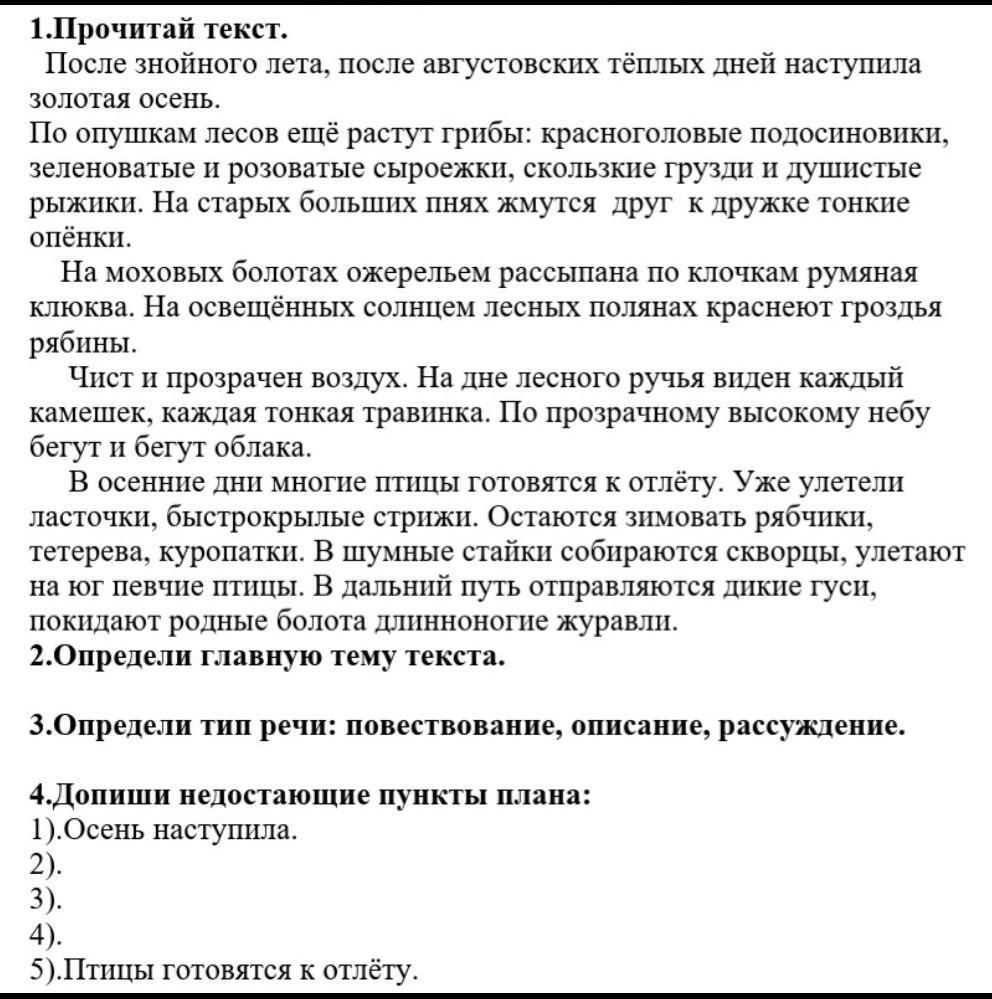 2)Мысль текста: наступает осень и птицы отправляются лететь на зимовку в теплые края