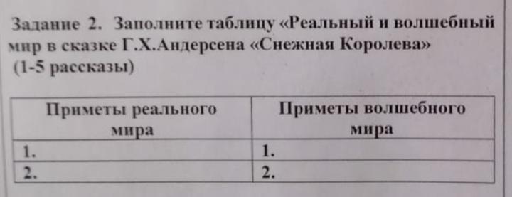 Заполните таблицу "Реальный и волшебный мир в сказке" Г.Х. Андерсон "Снежная королева"