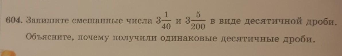 Мы получили одинаковые десятичные дроби, потому что дробная часть у обоих смешанных чисел равна, то есть мы можем сократить 5/200 на 5 и получить 1/40.