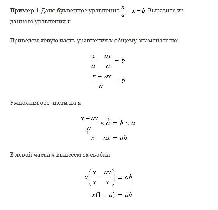 Так же и здесь, вынося за скобки x, мы делим на x каждый член, а поскольку множитель x в членах присутствовал, потом он сокращается.