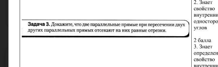 это ведь параллельные прямые ,они всегда должны быть параллельны, значит ,находятся на одинаковом расстоянии друг от друга,например 2 сантиметра, и значит расстояние всегда должно быть 2 см.,если если где-то хоть чуть расстояние изменится ,значит,они уже не будут параллельными.