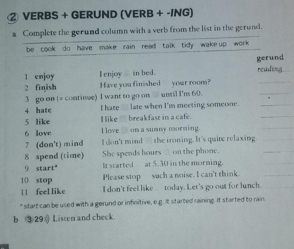 a Complete the gerund column with a verb from the list in the gerund.