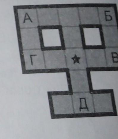 Робот федя умеет двигаться вверх, вправо, и делать ходы во всех диагональных направлениях. он начал ход с клетки, отмеченной звездочкой. В какую клетку он не может попасть?