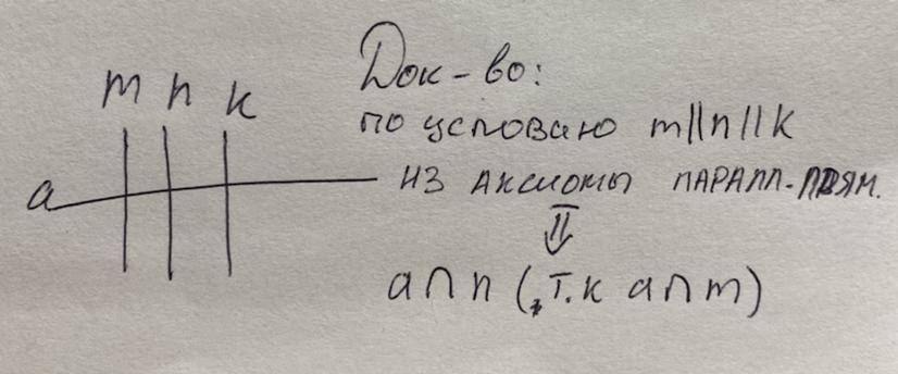 1. Каждая из прямых m и n параллельна прямой k. Прямая а пересекает прямую m. Пересечет ли она прямую n? Ответ пояснить.